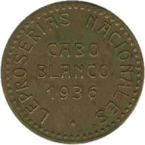 | Anverso | Gr�fila con puntos. En forma circular la leyenda Leproser�as Nacionales y en tres (3) l�neas horizontales: Cabo Blanco 1936 |