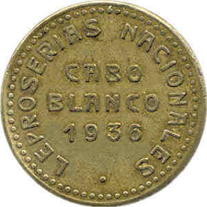 | Anverso | Gr�fila con puntos. En forma circular la leyenda Leproser�as Nacionales y en tres (3) l�neas horizontales: Cabo Blanco 1936 |