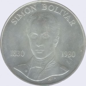 | Anverso | Ribete circular sin gráfila. En el centro, sobre el campo, la efigie del Libertador Simón Bolívar de AITA, con la inscripción SIMON BOLÍVAR en la parte superior, 1830-1980 a los lados de la efigie y AITA debajo de la misma. |