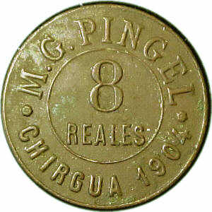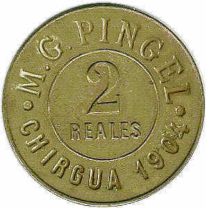 Grafila igual al anverso; en el campo el Escudo de Armas y alrrededor: ESTADOS UNIDOS DE VENEZUELA. GR. 8.0645 * 1875 * LEI 900 |